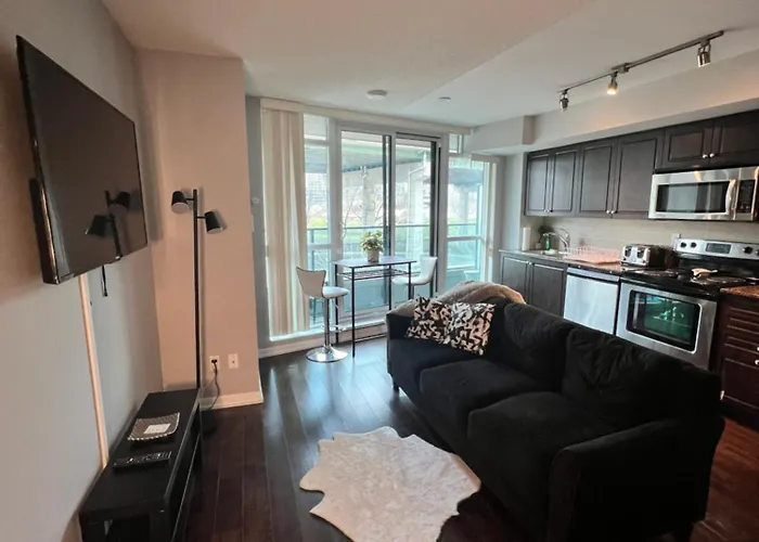À 20 minutes de marche de la Tour du CN, Downtown Toronto Cozy Suite de 46 m^2 offre un centre avec piscine intérieure. L'appartement se trouve juste à côté de The Bentway et est situé dans le voisinage de "Centre de Toronto" à Toronto.